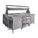 - Стол СПН (2085*500*850 мм, полка сплошная, 8 стоек, борт), 3 секции: справа нижняя полка, по центру ниша (в нише располагается холодильный стол СХСн-500-0/2), слева нижняя полка