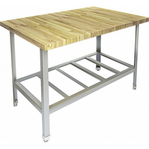 Разборный каркас выполнениз уголка нержавеющей стали AISI 430, столешница - из бука толщиной 40 мм.Дополнительные характеристики