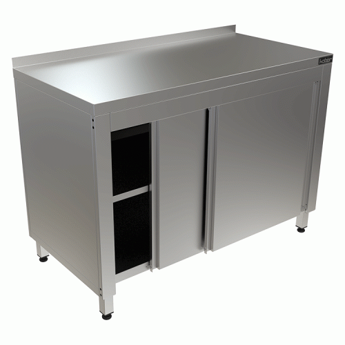 Особенности:- столешница - нерж. сталь. aisi 430,- усиление ЛДСП,- каркас разборный из нерж. стали 430,- двери-купе,- полка,- с бортом.
