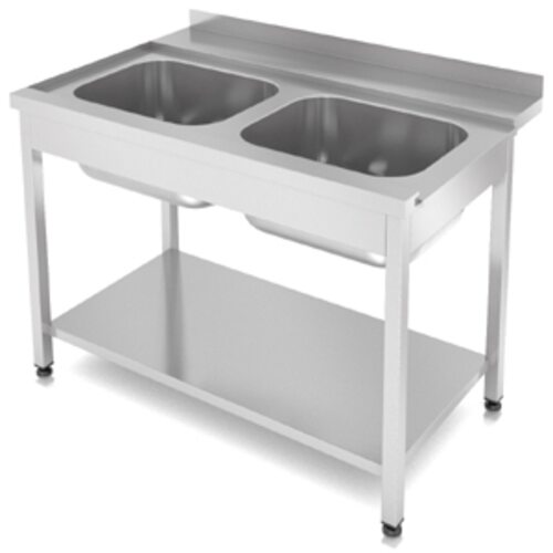 Стол предмоечный левый, 2 мойки 500х400х250, без отверстий под смеситель, ножки из профильной трубы, разборный. Стол предназначен для посудомоечной машины Dihr HT. Столешница по задней стороне имеет борт высотой 70 мм, зацеп к машине - справа, фиксатор кассет - слева. Ширина зацепа - 510мм. Стол изготовлен из нержавеющей стали. Ножки регулируются по высоте.